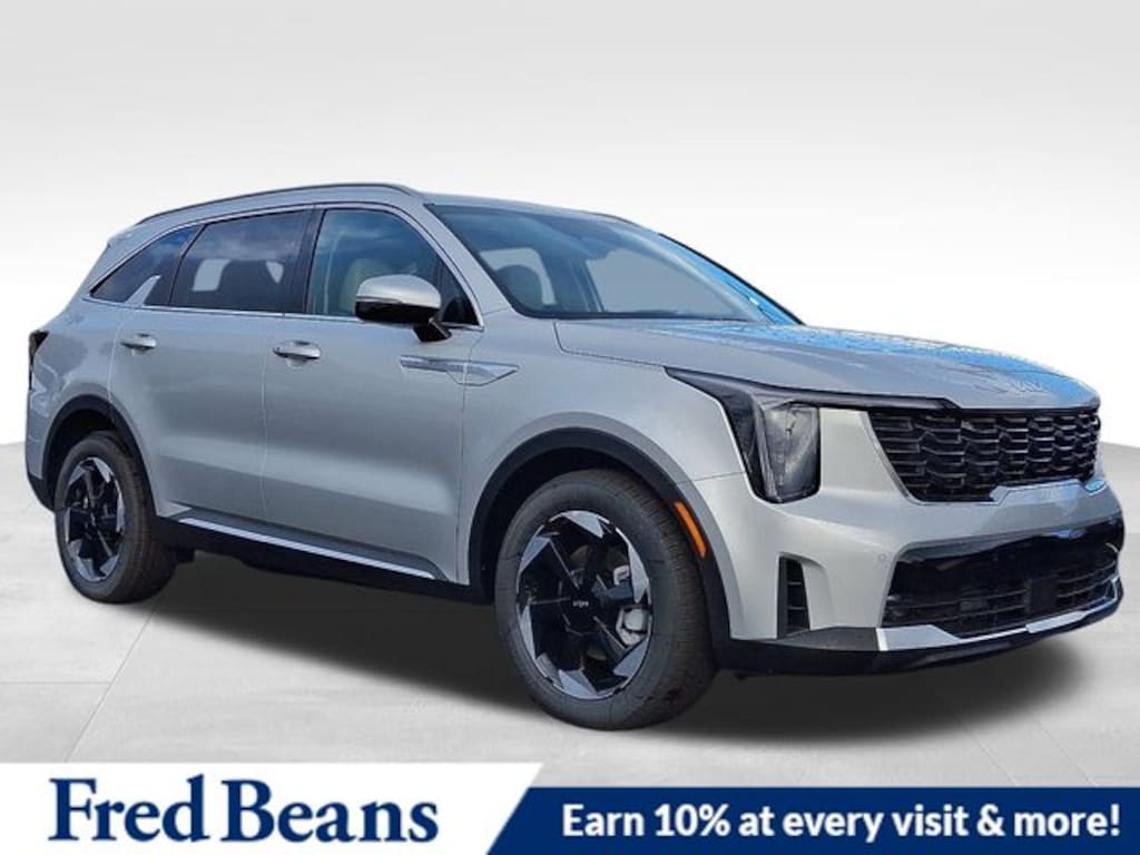 Visit our Website for a Complimentary CarFax Report!!!, Free First Oil Change, Auto Reward Program, 1.6L Turbo GDI 4-Cylinder, 3rd row seats: split-bench, 4-Wheel Disc Brakes, 6 Speakers, ABS brakes, Air Conditioning, Alloy wheels, AM/FM radio: SiriusXM, Apple CarPlay & Android Auto, Auto High-beam Headlights, Automatic temperature control, Brake assist, Bumpers: body-color, Cargo Net, Carpeted Cargo Mat w/Seatback Protection, Carpeted Floor Mats, Delay-off headlights, Driver door bin, Driver vanity mirror, Dual front impact airbags, Dual front side impact airbags, Electronic Stability Control, Emergency communication system: 911 Connect, Exterior Parking Camera Rear, Four wheel independent suspension, Front anti-roll bar, Front Bucket Seats, Front Center Armrest, Front dual zone A/C, Front fog lights, Front reading lights, Fully automatic headlights, Heated door mirrors, Heated Front Bucket Seats, Heated front seats, Illuminated entry, Knee airbag, Leather steering wheel, Low tire pressure warning, Navigation System, Occupant sensing airbag, Outside temperature display, Overhead airbag, Overhead console, Panic alarm, Passenger door bin, Passenger vanity mirror, Power door mirrors, Power driver seat, Power Liftgate, Power passenger seat, Power steering, Power windows, Radio data system, Radio: AM/FM/SiriusXM Audio System, Rear air conditioning, Rear anti-roll bar, Rear reading lights, Rear window defroster, Rear window wiper, Remote keyless entry, Security system, Speed control, Speed-sensing steering, Split folding rear seat, Spoiler, Steering wheel mounted audio controls, SynTex Artificial Leather Seat Trim, Tachometer, Telescoping steering wheel, Tilt steering wheel, Traction control, Trip computer, Turn signal indicator mirrors, Variably intermittent wipers, Wheels: 19" Machine-Finished Aero Alloy, 1.6L Turbo GDI 4-Cylinder. 2025 Kia Sorento Hybrid EX EX 1.6L Turbo GDI 4-Cylinder AWD Silky Silver Price includes: $2500 - KFA Dealer Choice Program: $2500 discount and 5.25% APR for 36 months. $30.08 per $1000 financed. Available to well qualified buyers who finance through Kia Finance America. 506. Exp. 12/01/2025 $750 - Sticker Sales Event Retail Bonus Cash. Exp. 12/01/2025