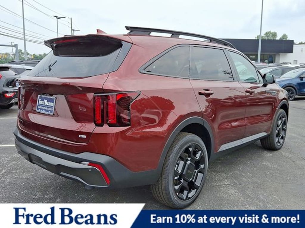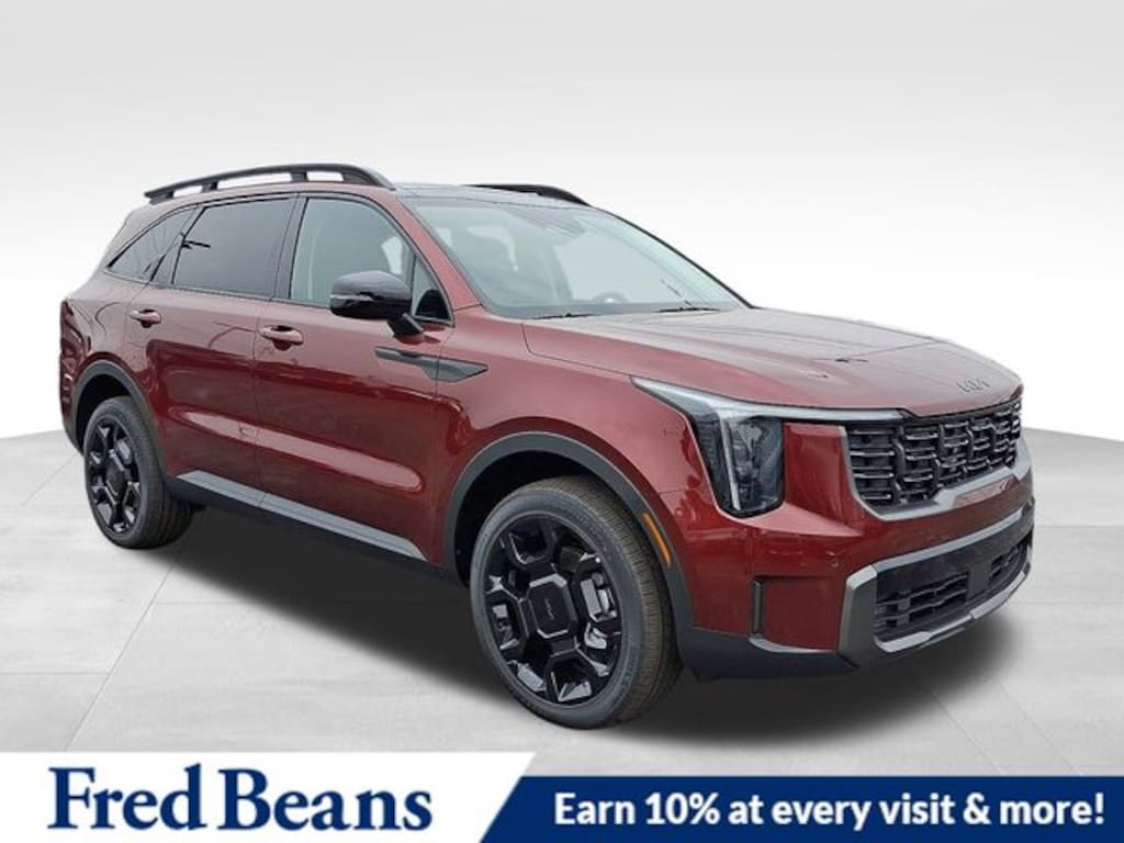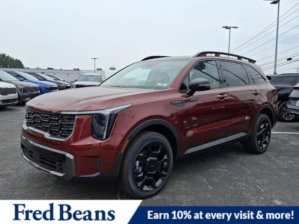 Visit our Website for a Complimentary CarFax Report!!!, Free First Oil Change, Auto Reward Program, AWD, 3rd row seats: split-bench, 4-Wheel Disc Brakes, 6 Speakers, ABS brakes, Air Conditioning, Alloy wheels, AM/FM radio: SiriusXM, Apple CarPlay & Android Auto, Auto High-beam Headlights, Auto-dimming Rear-View mirror, Automatic temperature control, Brake assist, Bumpers: body-color, Delay-off headlights, Driver door bin, Driver vanity mirror, Dual front impact airbags, Dual front side impact airbags, Electronic Stability Control, Emergency communication system: 911 Connect, Exterior Parking Camera Rear, Four wheel independent suspension, Front anti-roll bar, Front Bucket Seats, Front Center Armrest, Front dual zone A/C, Front fog lights, Front reading lights, Fully automatic headlights, Heated door mirrors, Heated Front Bucket Seats, Heated front seats, Illuminated entry, Knee airbag, Leather Shift Knob, Leather steering wheel, Low tire pressure warning, Navigation System, Occupant sensing airbag, Outside temperature display, Overhead airbag, Overhead console, Panic alarm, Passenger door bin, Passenger vanity mirror, Power door mirrors, Power driver seat, Power Liftgate, Power moonroof, Power passenger seat, Power steering, Power windows, Radio data system, Radio: AM/FM Standard Sound System, Rear anti-roll bar, Rear reading lights, Rear side impact airbag, Rear window defroster, Rear window wiper, Remote keyless entry, Security system, Speed control, Speed-sensing steering, Split folding rear seat, Spoiler, Steering wheel mounted audio controls, SynTex Artificial Leather Seat Trim, Tachometer, Telescoping steering wheel, Tilt steering wheel, Traction control, Trip computer, Turn signal indicator mirrors, Variably intermittent wipers, Wheels: 20" Gloss Black X-Line Alloy, AWD. 2025 Kia Sorento X-Line EX X-Line EX 2.5L I4 DGI Turbocharged DOHC 16V LEV3-SULEV30 281hp AWD Dawning Red Price includes: $1000 - Sticker Sales Event Retail Bonus Cash. Exp. 01/02/2026 $2500 - KFA Dealer Choice Program: $2500 discount and 5.25% APR for 36 months. $30.08 per $1000 financed. Available to well qualified buyers who finance through Kia Finance America. 506. Exp. 01/02/2026