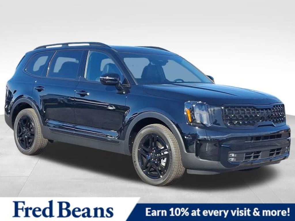 Visit our Website for a Complimentary CarFax Report!!!, Free First Oil Change, Auto Reward Program, 10 Speakers, 3rd row seats: split-bench, 4-Wheel Disc Brakes, ABS brakes, Air Conditioning, All Weather Floor Mats, Alloy wheels, AM/FM radio: SiriusXM, Apple CarPlay & Android Auto, Auto High-beam Headlights, Auto-dimming Rear-View mirror, Auto-leveling suspension, Automatic temperature control, Brake assist, Bumpers: body-color, Compass, Delay-off headlights, Driver door bin, Driver vanity mirror, Dual front impact airbags, Dual front side impact airbags, Electronic Stability Control, Emergency communication system: 911 Connect, Exterior Parking Camera Rear, Four wheel independent suspension, Front anti-roll bar, Front Bucket Seats, Front Center Armrest, Front dual zone A/C, Front fog lights, Front reading lights, Fully automatic headlights, Garage door transmitter: HomeLink, harman/kardon® Speakers, Heated & Ventilated Front Bucket Seats, Heated door mirrors, Heated front seats, Heated steering wheel, Illuminated entry, Knee airbag, Leather Seat Trim, Leather Shift Knob, Leather steering wheel, Low tire pressure warning, Memory seat, Navigation System, Occupant sensing airbag, Outside temperature display, Overhead airbag, Overhead console, Panic alarm, Passenger door bin, Passenger vanity mirror, Power door mirrors, Power driver seat, Power Liftgate, Power moonroof, Power passenger seat, Power steering, Power windows, Radio data system, Radio: AM/FM Harman Kardon Audio System, Rear air conditioning, Rear anti-roll bar, Rear audio controls, Rear reading lights, Rear side impact airbag, Rear window defroster, Rear window wiper, Reclining 3rd row seat, Remote keyless entry, Security system, Speed control, Speed-sensing steering, Split folding rear seat, Spoiler, Steering wheel mounted audio controls, Tachometer, Telescoping steering wheel, Tilt steering wheel, Tow Hitch w/Cover, Traction control, Trip computer, Turn signal indicator mirrors, Variably intermittent wipers, Ventilated front seats, Wheels: 20" x 7.5" Black Finish X-LINE Exclusive. 2025 Kia Telluride SX X-Line SX X-Line 3.8L V6 DOHC AWD Ebony Black Price includes: $1000 - Sticker Sales Event Retail Bonus Cash. Exp. 01/02/2026 $2000 - KFA Dealer Choice Program: $2000 discount and 5.25% APR for 36 months. $30.08 per $1000 financed. Available to well qualified buyers who finance through Kia Finance America. 506. Exp. 01/02/2026