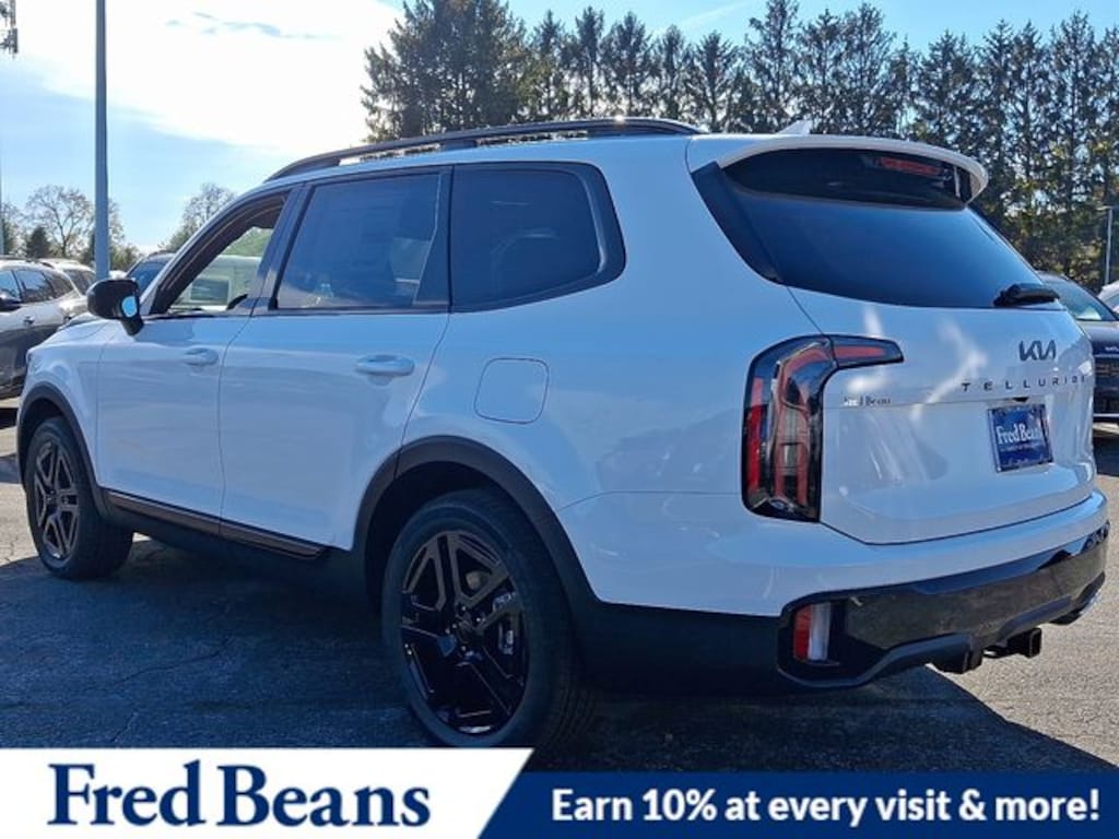 Visit our Website for a Complimentary CarFax Report!!!, Free First Oil Change, Auto Reward Program, 10 Speakers, 3rd row seats: split-bench, 4-Wheel Disc Brakes, ABS brakes, Air Conditioning, All Weather Floor Mats, Alloy wheels, AM/FM radio: SiriusXM, Apple CarPlay & Android Auto, Auto High-beam Headlights, Auto-dimming Rear-View mirror, Auto-leveling suspension, Automatic temperature control, Brake assist, Bumpers: body-color, Compass, Delay-off headlights, Driver door bin, Driver vanity mirror, Dual front impact airbags, Dual front side impact airbags, Electronic Stability Control, Emergency communication system: 911 Connect, Exterior Parking Camera Rear, Four wheel independent suspension, Front anti-roll bar, Front Bucket Seats, Front Center Armrest, Front dual zone A/C, Front fog lights, Front reading lights, Fully automatic headlights, Garage door transmitter: HomeLink, harman/kardon® Speakers, Heads-Up Display, Heated & Ventilated Front Bucket Seats, Heated door mirrors, Heated front seats, Heated rear seats, Heated steering wheel, Illuminated entry, Knee airbag, Leather Shift Knob, Leather steering wheel, Low tire pressure warning, Memory seat, Nappa Leather Seat Trim, Navigation System, Occupant sensing airbag, Outside temperature display, Overhead airbag, Overhead console, Panic alarm, Passenger door bin, Passenger vanity mirror, Power door mirrors, Power driver seat, Power Liftgate, Power moonroof, Power passenger seat, Power steering, Power windows, Radio data system, Radio: AM/FM Harman Kardon Audio System, Rain sensing wipers, Rear air conditioning, Rear anti-roll bar, Rear audio controls, Rear reading lights, Rear side impact airbag, Rear window defroster, Rear window wiper, Reclining 3rd row seat, Remote keyless entry, Security system, Speed control, Speed-sensing steering, Split folding rear seat, Spoiler, Steering wheel mounted audio controls, Tachometer, Telescoping steering wheel, Terracotta Interior Color Package, Tilt steering wheel, Tow Hitch w/Cover, Traction control, Trip computer, Turn signal indicator mirrors, Variably intermittent wipers, Ventilated front seats, Ventilated rear seats, Wheels: 20" x 7.5" Black Finish X-LINE Exclusive. 2025 Kia Telluride SX-Prestige X-Line SX-Prestige X-Line 3.8L V6 DOHC AWD Glacial White Pearl Price includes: $1000 - Sticker Sales Event Retail Bonus Cash. Exp. 01/02/2026 $2000 - KFA Dealer Choice Program: $2000 discount and 5.25% APR for 36 months. $30.08 per $1000 financed. Available to well qualified buyers who finance through Kia Finance America. 506. Exp. 01/02/2026