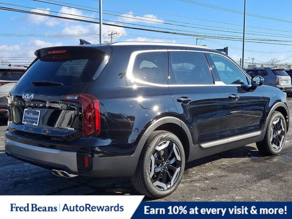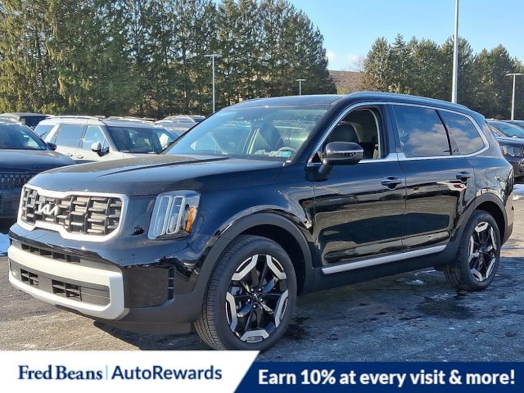 3rd row seats: split-bench, 4-Wheel Disc Brakes, 6 Speakers, ABS brakes, Air Conditioning, All Weather Floor Mats, Alloy wheels, AM/FM radio: SiriusXM, Apple CarPlay & Android Auto, Auto High-beam Headlights, Automatic temperature control, Brake assist, Bumpers: body-color, Delay-off headlights, Driver door bin, Driver vanity mirror, Dual front impact airbags, Dual front side impact airbags, Electronic Stability Control, Emergency communication system: 911 Connect, Exterior Parking Camera Rear, Four wheel independent suspension, Front anti-roll bar, Front Bucket Seats, Front Center Armrest, Front dual zone A/C, Front reading lights, Fully automatic headlights, Heated door mirrors, Heated Front Bucket Seats, Heated front seats, Illuminated entry, Knee airbag, Leather Shift Knob, Leather steering wheel, Low tire pressure warning, Navigation System, Occupant sensing airbag, Outside temperature display, Overhead airbag, Overhead console, Panic alarm, Passenger door bin, Passenger vanity mirror, Power door mirrors, Power driver seat, Power Liftgate, Power moonroof, Power steering, Power windows, Radio data system, Radio: AM/FM Display Audio System, Rear air conditioning, Rear anti-roll bar, Rear audio controls, Rear reading lights, Rear side impact airbag, Rear window defroster, Rear window wiper, Reclining 3rd row seat, Remote keyless entry, Security system, Speed control, Speed-sensing steering, Split folding rear seat, Spoiler, Steering wheel mounted audio controls, SynTex Synthetic Leather Seat Trim, Tachometer, Telescoping steering wheel, Tilt steering wheel, Traction control, Trip computer, Turn signal indicator mirrors, Variably intermittent wipers, Wheels: 20" x 7.5" Black Finish. 2025 Kia Telluride S S 3.8L V6 DOHC AWD Ebony Black Price includes: $2000 - Kia Customer Cash. Exp. 03/31/2026