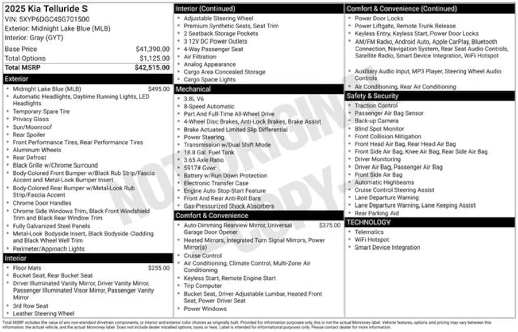 - Combo APR Offer: 5.50% APR for 48 months on select 2025 Kia TellurideDetails