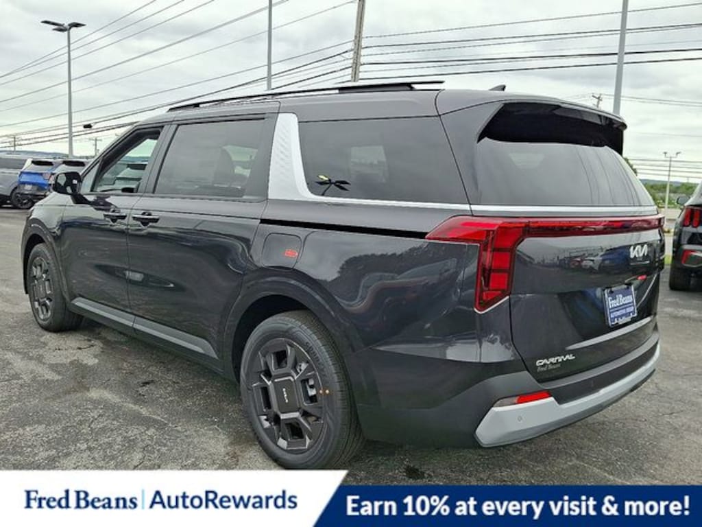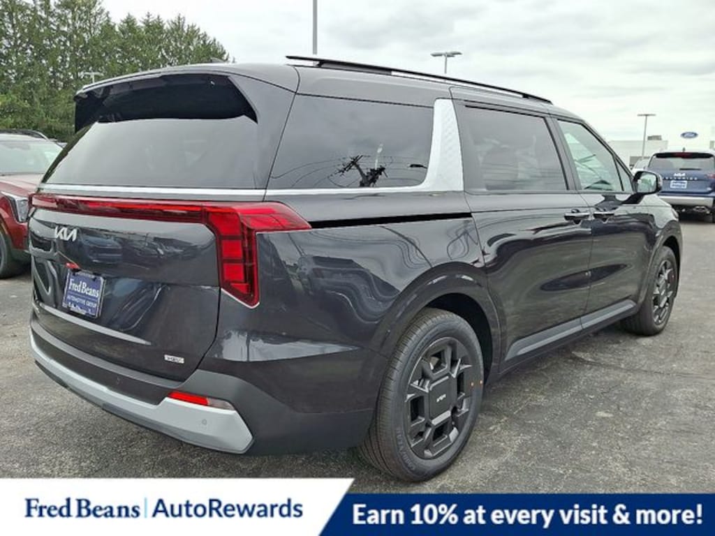 1.6L I4 DGI Hybrid Turbocharged DOHC 16V LEV3-SULEV30, 3rd row seats: split-bench, 4-Wheel Disc Brakes, 8 Speakers, ABS brakes, Air Conditioning, Alloy wheels, AM/FM radio: SiriusXM, Apple CarPlay & Android Auto, Artificial Leather Seat Trim, Auto High-beam Headlights, Automatic temperature control, Brake assist, Bumpers: body-color, Carpeted Floor Mats (8-Passenger), Compass, Delay-off headlights, Driver door bin, Driver vanity mirror, Dual front impact airbags, Dual front side impact airbags, Electronic Stability Control, Emergency communication system, Exterior Parking Camera Rear, Four wheel independent suspension, Front anti-roll bar, Front Bucket Seats, Front Center Armrest, Front dual zone A/C, Front reading lights, Fully automatic headlights, Heated door mirrors, Heated Front Bucket Seats, Heated front seats, Illuminated entry, Knee airbag, Leather Shift Knob, Leather steering wheel, Low tire pressure warning, Memory seat, Navigation System, Occupant sensing airbag, Outside temperature display, Overhead airbag, Overhead console, Panic alarm, Passenger door bin, Passenger vanity mirror, Power door mirrors, Power driver seat, Power Liftgate, Power passenger seat, Power steering, Power windows, Radio: Navigation System w/SiriusXM, Rear air conditioning, Rear anti-roll bar, Rear reading lights, Rear window defroster, Rear window wiper, Reclining 3rd row seat, Remote keyless entry, Security system, Speed control, Speed-sensing steering, Split folding rear seat, Spoiler, Steering wheel mounted audio controls, Tachometer, Telescoping steering wheel, Tilt steering wheel, Traction control, Trip computer, Turn signal indicator mirrors, Variably intermittent wipers, Wheels: 19" Black Alloy, 1.6L I4 DGI Hybrid Turbocharged DOHC 16V LEV3-SULEV30. 2026 Kia Carnival Hybrid EX EX 1.6L I4 DGI Hybrid Turbocharged DOHC 16V LEV3-SULEV30 FWD Panthera Metal Price includes: $1000 - KFA Dealer Choice Program: $1000 discount and 5.50% APR for 36 months. $30.20 per $1000 financed. Available to well qualified buyers who finance through Kia Finance America. 506. Exp. 11/03/2025