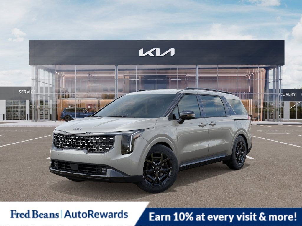 1.6L I4 DGI Hybrid Turbocharged DOHC 16V LEV3-SULEV30, 12 Speakers, 2nd Row Laminated Windows, 3rd row seats: split-bench, 4-Wheel Disc Brakes, ABS brakes, Air Conditioning, Alloy wheels, AM/FM radio: SiriusXM, Ambient Lighting, Apple CarPlay & Android Auto, Auto High-beam Headlights, Auto-dimming Rear-View mirror, Automatic temperature control, Brake assist, Bumpers: body-color, Cargo Mat, Compass, Cross Bars, Delay-off headlights, Driver door bin, Driver vanity mirror, Dual front impact airbags, Dual front side impact airbags, Electronic Stability Control, Emergency communication system, Exterior Parking Camera Rear, Four wheel independent suspension, Front anti-roll bar, Front Bucket Seats, Front Center Armrest, Front dual zone A/C, Front fog lights, Front reading lights, Fully automatic headlights, Garage door transmitter: HomeLink, Heads-Up Display, Heated & Ventilated Front Bucket Seats, Heated door mirrors, Heated front seats, Heated steering wheel, Heated/Ventilated 2nd Row Power VIP Lounge Seats, High Glossy Interior Trim, Illuminated entry, Knee airbag, Leather Seat Trim, Leather Shift Knob, Leather steering wheel, Low tire pressure warning, Memory seat, Mud Guards, Navigation System, Occupant sensing airbag, Outside temperature display, Overhead airbag, Overhead console, Panic alarm, Passenger door bin, Passenger vanity mirror, Power 2nd-Row Moonroof, Power door mirrors, Power driver seat, Power Liftgate, Power moonroof, Power passenger seat, Power steering, Power windows, Radio: Navigation System w/SiriusXM, Rain sensing wipers, Rear air conditioning, Rear anti-roll bar, Rear reading lights, Rear window defroster, Rear window wiper, Reclining 3rd row seat, Remote keyless entry, Security system, Speed control, Speed-sensing steering, Split folding rear seat, Spoiler, Steering wheel mounted audio controls, SX Prestige Seat Package, Tachometer, Telescoping steering wheel, Tilt steering wheel, Traction control, Trip computer, Turn signal indicator mirrors, Variably intermittent wipers, Ventilated front seats, Wheels: 19" Black D-Cut Customizing, 1.6L I4 DGI Hybrid Turbocharged DOHC 16V LEV3-SULEV30. 2026 Kia Carnival Hybrid SX Prestige SX Prestige 1.6L I4 DGI Hybrid Turbocharged DOHC 16V LEV3-SULEV30 FWD Ivory Silver Price includes: $1000 - KFA Dealer Choice Program: $1000 discount and 5.50% APR for 36 months. $30.20 per $1000 financed. Available to well qualified buyers who finance through Kia Finance America. 506. Exp. 11/03/2025
