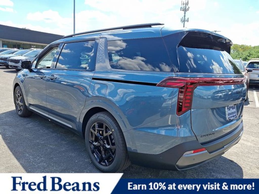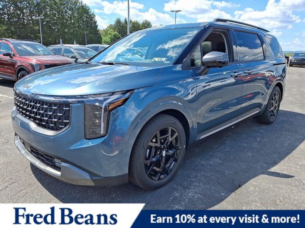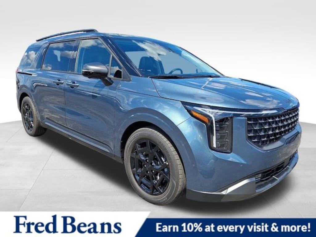 Visit our Website for a Complimentary CarFax Report!!!, Free First Oil Change, Auto Reward Program, 12 Speakers, 2nd Row Laminated Windows, 3.51 Axle Ratio, 3rd row seats: split-bench, 4-Wheel Disc Brakes, ABS brakes, Air Conditioning, Alloy wheels, AM/FM radio: SiriusXM, Ambient Lighting, Apple CarPlay & Android Auto, Auto High-beam Headlights, Auto-dimming Rear-View mirror, Automatic temperature control, Brake assist, Bumpers: body-color, Compass, Delay-off headlights, Driver door bin, Driver vanity mirror, Dual front impact airbags, Dual front side impact airbags, Electronic Stability Control, Emergency communication system, Exterior Parking Camera Rear, Four wheel independent suspension, Front anti-roll bar, Front Bucket Seats, Front Center Armrest, Front dual zone A/C, Front fog lights, Front reading lights, Fully automatic headlights, Garage door transmitter: HomeLink, Heads-Up Display, Heated & Ventilated Front Bucket Seats, Heated door mirrors, Heated front seats, Heated steering wheel, Heated/Ventilated 2nd Row Power Seats, High Glossy Interior Trim, Illuminated entry, Knee airbag, Leather Shift Knob, Leather steering wheel, Low tire pressure warning, Luxury Carpeted Floor Mats, Memory seat, Navigation System, Occupant sensing airbag, Outside temperature display, Overhead airbag, Overhead console, Panic alarm, Passenger door bin, Passenger vanity mirror, Power 2nd-Row Moonroof, Power door mirrors, Power driver seat, Power Liftgate, Power moonroof, Power passenger seat, Power steering, Power windows, Pure Leather Seat Trim, Radio: AM/FM/HD Audio System, Rain sensing wipers, Rear air conditioning, Rear anti-roll bar, Rear reading lights, Rear window defroster, Rear window wiper, Reclining 3rd row seat, Remote keyless entry, Security system, Speed control, Speed-sensing steering, Split folding rear seat, Spoiler, Steering wheel mounted audio controls, SX Prestige Seat Package, Tachometer, Telescoping steering wheel, Tilt steering wheel, Traction control, Trip computer, Turn signal indicator mirrors, Variably intermittent wipers, Ventilated front seats, Wheels: 7.5J x 19" Alloy Dark Edition. 2026 Kia Carnival SX Prestige SX Prestige V6 FWD Astra Blue Price includes: $1000 - KFA Dealer Choice Program: $1000 discount and 5.50% APR for 36 months. $30.20 per $1000 financed. Available to well qualified buyers who finance through Kia Finance America. 506. Exp. 11/03/2025
