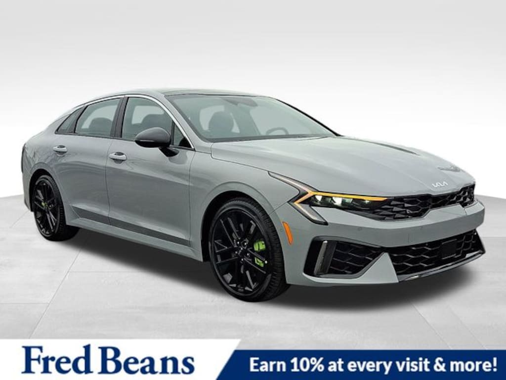 Visit our Website for a Complimentary CarFax Report!!!, Free First Oil Change, Auto Reward Program, 12.3" Instrument Display, 4-Wheel Disc Brakes, 6 Speakers, ABS brakes, Active Sound Design, Air Conditioning, Alloy wheels, AM/FM radio: SiriusXM, Auto High-beam Headlights, Auto Up/Down Front Passenger and Rear Windows, Auto-Dimming Mirror with HomeLink, Automatic temperature control, Blind-Spot View Monitor, Bose Premium Audio, Brake assist, Bumpers: body-color, Carpeted Floor Mats, Delay-off headlights, Driver door bin, Driver vanity mirror, Dual front impact airbags, Dual front side impact airbags, Electronic Stability Control, Emergency communication system: Kia Connect (includes 1 year free trial), Four wheel independent suspension, Front anti-roll bar, Front Bucket Seats, Front Center Armrest, Front dual zone A/C, Front fog lights, Front reading lights, Fully automatic headlights, GT1 Package, Heated door mirrors, Heated front seats, Heated Sport Bucket Seats, Heated Steering Wheel, Illuminated entry, Knee airbag, Leather Shift Knob, Leather steering wheel, Low tire pressure warning, Memory Driver's Seat and Outside Mirrors, Navigation System, Occupant sensing airbag, Outside temperature display, Overhead airbag, Overhead console, Panic alarm, Parking Collision Avoidance-Assist - Reverse, Parking Distance Warning - Side, Passenger door bin, Passenger vanity mirror, Power door mirrors, Power driver seat, Power Folding Mirrors, Power Front Passenger Seat, Power moonroof, Power steering, Power windows, Radio data system, Radio: AM/FM Audio System, Rear anti-roll bar, Rear reading lights, Rear seat center armrest, Rear side impact airbag, Rear window defroster, Remote keyless entry, Security system, Smartphone Digital Key, Speed control, Speed-sensing steering, Split folding rear seat, Sport steering wheel, Steering wheel mounted audio controls, Surround View Monitor, SynTex Seat Trim, Tachometer, Telescoping steering wheel, Tilt steering wheel, Traction control, Trip computer, Turn signal indicator mirrors, Variably intermittent wipers, Ventilated Front Seats, Wheels: 19" x 8.0J Gloss Black Custom Alloy, Wheels: 19" x 8.0J Gloss Black Machined Finish Alloy. 2026 Kia K5 GT GT I4 FWD Wolf Gray Price includes: $1000 - KFA Dealer Choice Program: $1000 discount and 5.25% APR for 36 months. $30.08 per $1000 financed. Available to well qualified buyers who finance through Kia Finance America. 506. Exp. 01/02/2026