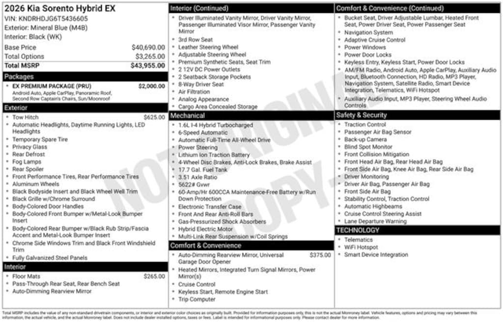 2026 Kia Sorento Hybrid EX EX Electric Motor AWD M4b