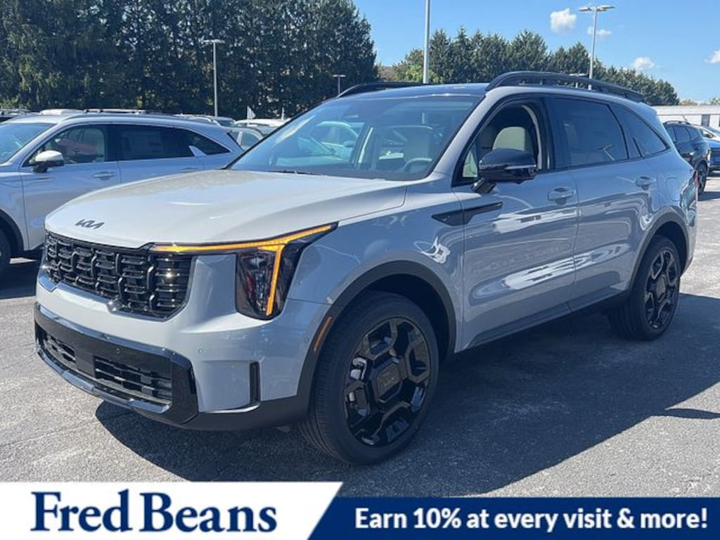 Visit our Website for a Complimentary CarFax Report!!!, Free First Oil Change, Auto Reward Program, AWD, 12 Speakers, 3rd row seats: split-bench, 4-Wheel Disc Brakes, ABS brakes, Air Conditioning, Alloy wheels, AM/FM radio: SiriusXM, Apple CarPlay & Android Auto, Auto High-beam Headlights, Auto-dimming Rear-View mirror, Automatic temperature control, Brake assist, Bumpers: body-color, Cargo Net, Delay-off headlights, Driver door bin, Driver vanity mirror, Dual front impact airbags, Dual front side impact airbags, Electronic Stability Control, Emergency communication system: 911 Connect, Exterior Parking Camera Rear, Four wheel independent suspension, Front anti-roll bar, Front Bucket Seats, Front Center Armrest, Front dual zone A/C, Front fog lights, Front reading lights, Fully automatic headlights, Garage door transmitter: HomeLink, Heated & Ventilated Front Bucket Seats, Heated door mirrors, Heated front seats, Heated steering wheel, Illuminated entry, Knee airbag, Leather Shift Knob, Leather steering wheel, Low tire pressure warning, Navigation System, Occupant sensing airbag, Outside temperature display, Overhead airbag, Overhead console, Panic alarm, Passenger door bin, Passenger vanity mirror, Power door mirrors, Power driver seat, Power Liftgate, Power moonroof, Power passenger seat, Power steering, Power windows, Radio data system, Radio: AM/FM Bose Premium Audio System, Rain sensing wipers, Rear anti-roll bar, Rear reading lights, Rear side impact airbag, Rear window defroster, Rear window wiper, Remote keyless entry, Security system, Speed control, Speed-sensing steering, Split folding rear seat, Spoiler, Steering wheel mounted audio controls, SynTex Artificial Leather Seat Trim, Tachometer, Telescoping steering wheel, Tilt steering wheel, Traction control, Trip computer, Turn signal indicator mirrors, Variably intermittent wipers, Ventilated front seats, Wheels: 20" Gloss Black X-Line Alloy, AWD. 2026 Kia Sorento X-Line SX X-Line SX 2.5L I4 DGI Turbocharged DOHC 16V LEV3-SULEV30 281hp AWD Wolf Gray Price includes: $2000 - KFA Dealer Choice Program: $2000 discount and 5.50% APR for 36 months. $30.20 per $1000 financed. Available to well qualified buyers who finance through Kia Finance America. 506. Exp. 11/03/2025