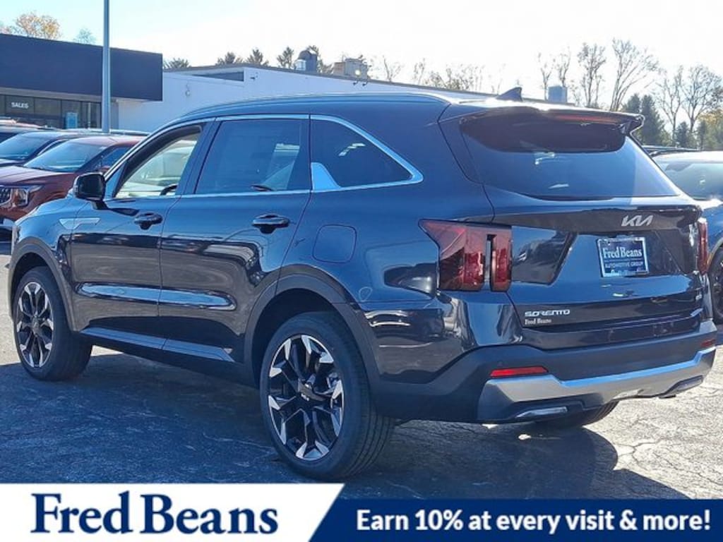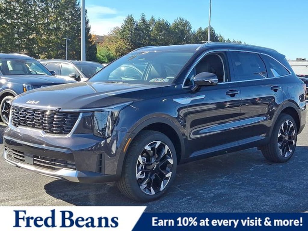 Visit our Website for a Complimentary CarFax Report!!!, Free First Oil Change, Auto Reward Program, AWD, 3rd row seats: split-bench, 4-Wheel Disc Brakes, 6 Speakers, ABS brakes, Air Conditioning, All Weather Floor Mats, Alloy wheels, AM/FM radio: SiriusXM, Apple CarPlay & Android Auto, Auto High-beam Headlights, Auto-dimming Rear-View mirror, Automatic temperature control, Brake assist, Bumpers: body-color, Delay-off headlights, Driver door bin, Driver vanity mirror, Dual front impact airbags, Dual front side impact airbags, Electronic Stability Control, Emergency communication system: 911 Connect, Exterior Parking Camera Rear, Four wheel independent suspension, Front anti-roll bar, Front Bucket Seats, Front Center Armrest, Front dual zone A/C, Front fog lights, Front reading lights, Fully automatic headlights, Heated door mirrors, Heated Front Bucket Seats, Heated front seats, Illuminated entry, Knee airbag, Leather Shift Knob, Leather steering wheel, Low tire pressure warning, Navigation System, Occupant sensing airbag, Outside temperature display, Overhead airbag, Overhead console, Panic alarm, Passenger door bin, Passenger vanity mirror, Power door mirrors, Power driver seat, Power Liftgate, Power passenger seat, Power steering, Power windows, Radio data system, Radio: AM/FM Standard Sound System, Rear anti-roll bar, Rear reading lights, Rear seat center armrest, Rear side impact airbag, Rear window defroster, Rear window wiper, Remote keyless entry, Security system, Speed control, Speed-sensing steering, Split folding rear seat, Spoiler, Steering wheel mounted audio controls, SynTex Artificial Leather Seat Trim, Tachometer, Telescoping steering wheel, Tilt steering wheel, Traction control, Trip computer, Turn signal indicator mirrors, Variably intermittent wipers, Wheels: 20" Machine-Finished Gloss Black Alloy, AWD. 2026 Kia Sorento EX EX 2.5L I4 DGI Turbocharged DOHC 16V LEV3-SULEV30 281hp AWD Panthera Metal Price includes: $2500 - KFA Dealer Choice Program: $2500 discount and 5.25% APR for 36 months. $30.08 per $1000 financed. Available to well qualified buyers who finance through Kia Finance America. 506. Exp. 01/02/2026