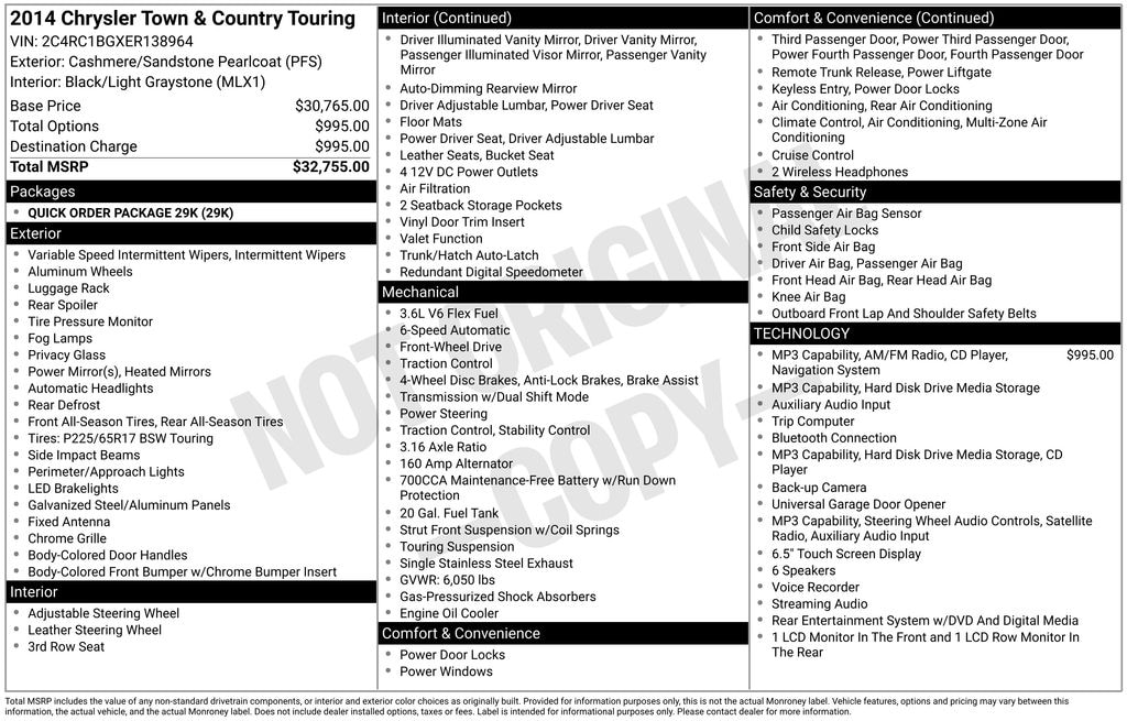Experience the epitome of family-friendly luxury with this 2014 Chrysler Town & Country Touring. This well-equipped minivan offers the perfect blend of versatility, comfort, and cutting-edge technology to elevate your daily drives and weekend adventures.